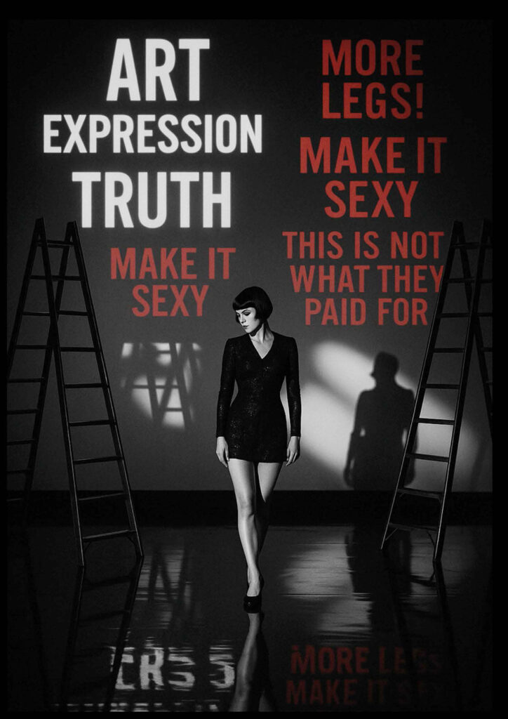 However, in Weill and Brecht’s original structure, the real story lies beneath the surface. The two Annas are not sisters, but two sides of the same woman. Anna I embodies reason, calm, strategic, and calculating. Anna II represents feeling, impulsive, emotional, and carnal. Together, they form a fragmented being, caught in the impossible task of remaining one and the same person while the world tears them apart.